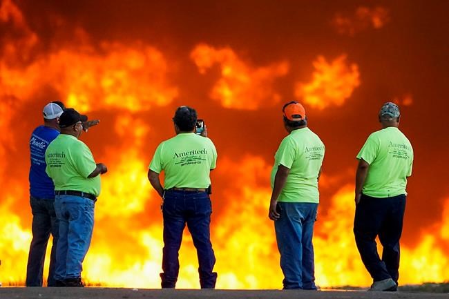 Fire officials have said a power line fell in a storage yard, igniting plastic sheeting. Garibay said the cause remains under investigation. No injuries were reported.