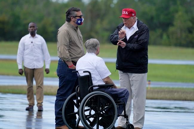 The president then flew by helicopter to Orange, Texas, which was the worst-hit area in the state. Several hundred supporters greeted his arrival with Trump 2020 flags, banners and signs. Among the officials on hand were Texas Gov. Greg Abbott and U.S. Sen. Ted Cruz, R-Texas. Before a flyover to view damaged areas, Trump and other officials visited the emergency operations centre in Orange County to discuss storm damage and the government response. He was flying back to Washington Saturday evening.
