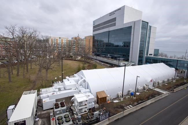 TORONTO – Long, white peaked structures have cropped up around Ontario hospitals — and while they use the same blueprint as military barracks and greenhouses, construction workers are working to transform them into state-of-the art hospital wings.