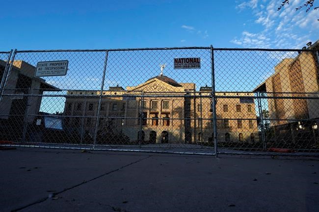 A double row of chain-link fencing circles the Arizona state capitol. Windows on the Illinois and Ohio statehouses have been boarded up. National Guard troops in camouflage and flak jackets and heavily armed state troopers were stationed at state capitals across the U.S. in advance of protests planned for Sunday.