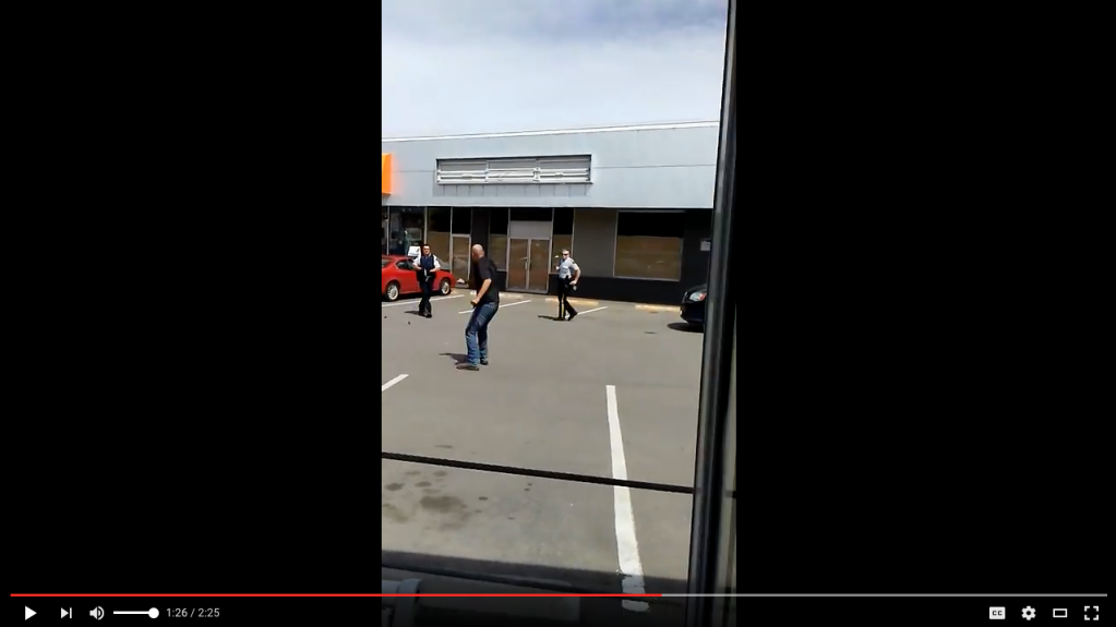 KAMLOOPS – A bystander waiting for a bus captured on video a police confrontation with a violent man at the bus loop near the Northhills Mall in Kamloops on Friday.