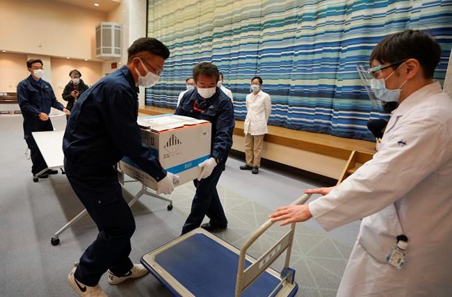 Vaccines arrived in a Tokyo hospital late Tuesday, the night before inoculations for its staff started Wednesday morning.
