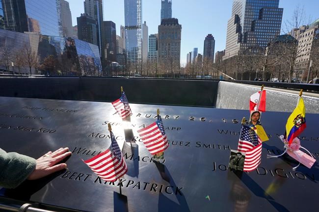 Because of the pandemic, the National 9-11 Memorial and Museum held a hybrid memorial, with some relatives and survivors gathering at the 9-11 Memorial for a private midday ceremony and about 60 others watching a Zoom feed. Flowers and small flags affixed with photos of the victims were placed next to their names on a plaque overlooking on of the site’s two reflecting pools.