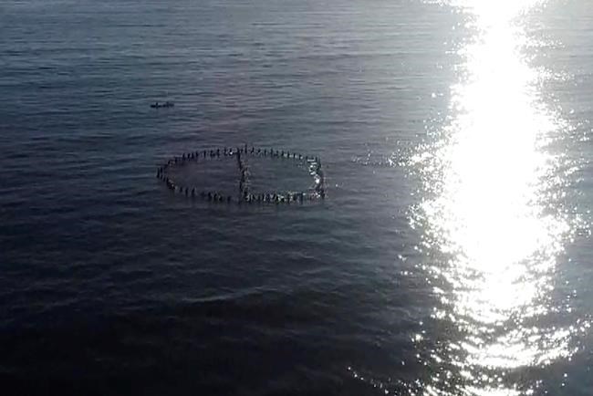 Around 100 surfers paddled to sea Tuesday to form a cancel symbol off the coast of the New South Wales state town in the hope that Netflix will can the series about social media influencers.