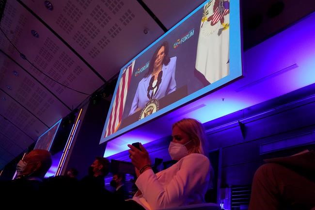 U.S. Vice President Kamala Harris, speaking via videoconference, highlighted threats to democracy around the world.