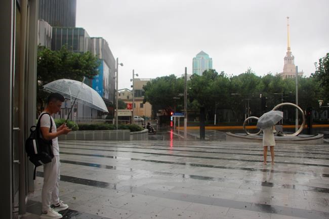 BEIJING (AP) — Typhoon In-fa hit China’s east coast south of Shanghai on Sunday after people living near the sea were evacuated, airline flights and trains were canceled and the public was ordered to stay indoors.