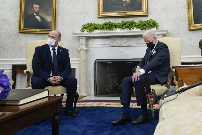THE FACTS: In the days following Biden’s Aug. 27 meeting with Israeli Minister Naftali Bennett, the false claim appeared on social media despite news coverage showing Biden was awake and engaged. A widely shared post on Facebook shows an image of Biden at the meeting with his head down and his eyes appear to be closed. Under the screenshot, the image says, “Watch: Joe Biden Caught (asterisk)Sleeping(asterisk) During High-Level Talks with Foreign Head of Government.” But image is misleading and the description is false. During a 14-minute video taken during the meeting, Biden does not fall asleep. He looks down at his lap several times, including when he’s listening and reading from his notepad. The image is captured in one of these moments. The two leaders met to discuss a range of topics, including COVID-19 and Iran’s nuclear capabilities. It was the first face-to-face meeting between the two men since Bennett was sworn-in as prime minister in June.