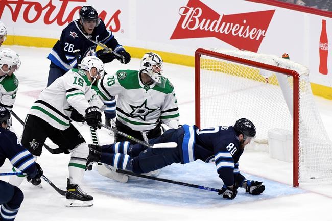 Winnipeg goaltender Eric Comrie stopped 24 of 27 shots. His Dallas counterpart Braden Holtby made 33 saves on 37 shots.