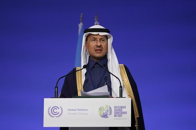 GLASGOW, Scotland (AP) — The tightest of smiles on his face and the fabric of his traditional thobe swirling about him as he strides through a hallway at U.N. climate talks, Saudi Arabia’s energy minister expresses shock at repeated complaints that the world’s largest oil producer is working behind the scenes to sabotage negotiations.
