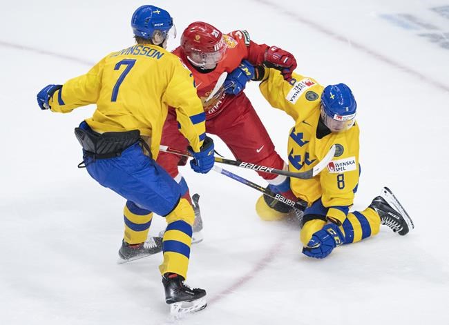 The incident occurred in the third period of Sweden’s 3-0 win over Slovakia on Monday in Red Deer, Alta.