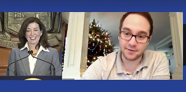 Walthall said he grew up in Massachusetts but has lived in New York for 11 years. He said his girlfriend is a New York City public school teacher, and he thanked Hochul for her efforts to promote COVID-19 vaccinations among eligible children. “It’s really important to keep both teachers and kids safe,” Walthall said, “so I definitely appreciate all you’re doing there.”