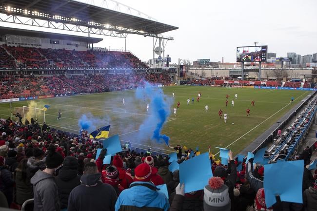 TORONTO – “Stand With Ukraine” was the message on the BMO Field video board before Toronto FC’s home opener against the New York Red Bulls on Saturday.