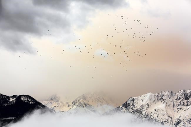 In Switzerland, skiers cut through orange-tinted snows on the Alpine slopes of the Pizol resort near tiny Liechtenstein, while reddish-hued skies loomed over places like the Payerne Air Base near Lake Neuchatel.