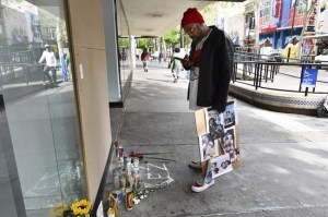 A small bouquet of purple roses was dedicated to Davis, who lived on the streets for years, with a note saying “Melinda Rest In Peace.”