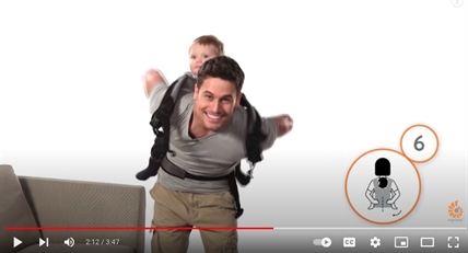 Baby Dylan sits comfortably on Ergo Dad’s hip and the two “bounce slightly” to the music as if they’re at a summer music festival. At this point, the video even goes into slow motion so you can really appreciate the moment they are sharing. Baby Dylan is 100% compliant as Ergo Dad shifts him to the back and buckles him up, no monkeying around whatsoever.