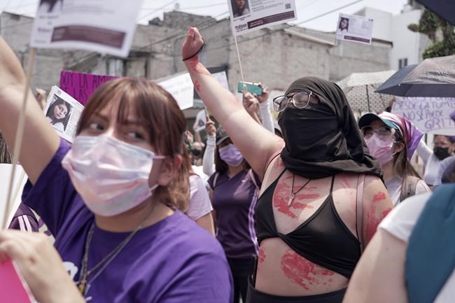 MEXICO CITY (AP) — Hundreds of women marched through downtown Mexico City and its suburbs on Sunday to protest the horrifying death of an 18-year-old in the northern city of Monterrey.