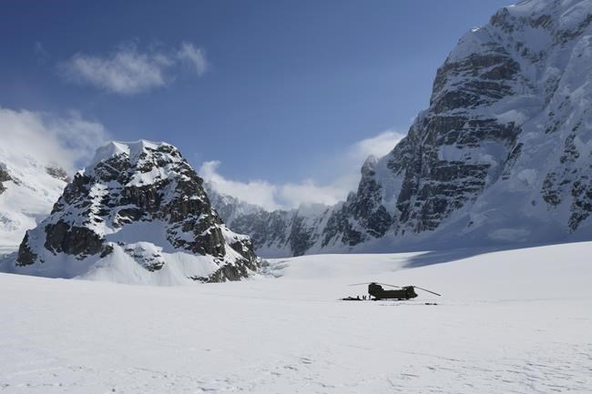 Aviators from B Company, 1st Battalion, 52nd Aviation Regiment at Fort Wainwright flew two bus-sized CH-47F Chinook helicopters Wednesday to continue the decades-old tradition of helping set up base camp on Denali, a 20,310-foot (6,190 meters) mountain located about 240 miles (386 kilometers) north of Anchorage.