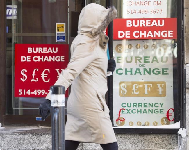 The Canadian dollar traded for 79.65 cents US compared with 79.59 cents US on Monday.