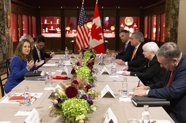 TORONTO – Finance Minister Chrystia Freeland and U.S. Treasury Secretary Janet Yellen say they recognize consumers are feeling the pain of high inflation and that their two countries are working together to combat price pressures by ensuring supply chains are more resilient.