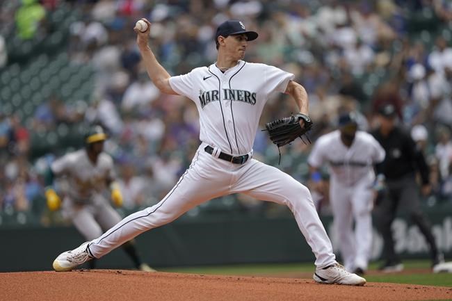 The Mariners loaded the bases with no outs in the ninth when Lou Trivino (1-6) walked Eugenio Suarez, Carlos Santana singled and Cal Raleigh reached on shortstop Nick Allen’s error.