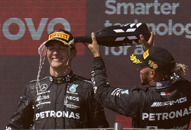 “That’s an incredible result for the team, great job George,” said Hamilton, who estimated sweating out “about three kilos” as track temperatures hit 51 degrees Celsius (124 Fahrenheit) at the Paul Ricard Circuit in southeastern France.