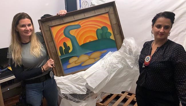 The haul included museum-quality pieces from Brazilian masters Tarsila do Amaral and Emiliano Di Cavalcanti. Video provided by police showed them finding more than 10 works underneath a bed and, at the bottom of the pile, was “Sol Poente” – a do Amaral painting of a brilliant-hued sunset.