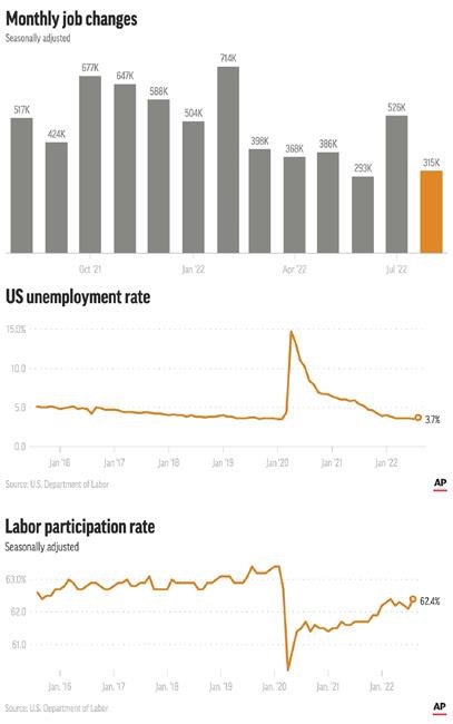 The economy gained 315,000 jobs in August, a still-solid figure that pointed to an economy that remains resilient despite rising interest rates, high inflation and sluggish consumer spending. Friday’s report from the government also showed that the unemployment rate rose to 3.7%, up from a half-century low of 3.5%. Yet that increase was also an encouraging sign: It reflected a long-awaited rise in the number of Americans who are looking for work.