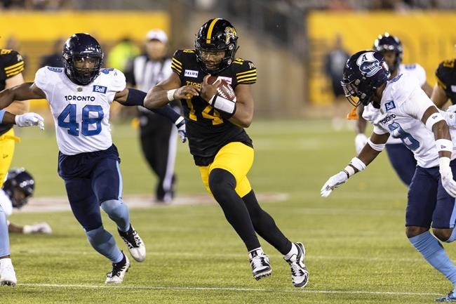 Toronto is atop the East Division, two points ahead of the Montreal Alouettes (4-7, who lost 38-24 on Friday night to Ottawa). Hamilton and Ottawa (3-8) are tied for third.