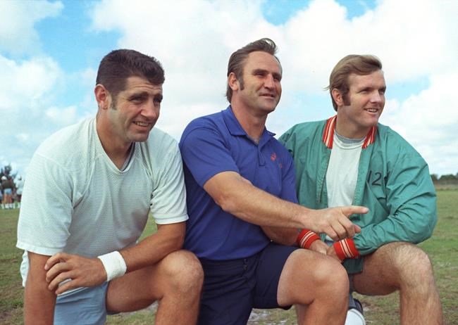 MIAMI (AP) — Fifty years ago, members of the 1972 Dolphins team lifted fiery coach Don Shula onto their shoulders for a victory lap out of Los Angeles Memorial Coliseum, celebrating not just a Super Bowl victory over Washington, but an emphatic exclamation point on the NFL’s only perfect season.