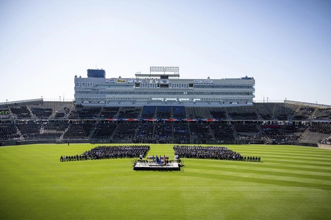 Thousands of police officers, some from as far away as California, Colorado, Texas and Canada, were in the stands for the nearly three-hour ceremony at Pratt & Whitney Stadium at Rentschler Field, the University of Connecticut’s 40,000-seat stadium in East Hartford.