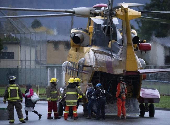 A statement from the company says the Cormorant crews were able to land on the highway in deteriorating weather and gale-force winds, despite the congestion and debris caused by the slides.