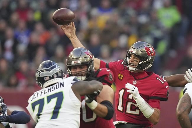 MUNICH (AP) — Tom Brady stayed undefeated abroad by throwing two touchdown passes to help the Tampa Bay Buccaneers beat the Seattle Seahawks 21-16 on Sunday in the first regular-season game played in Germany.