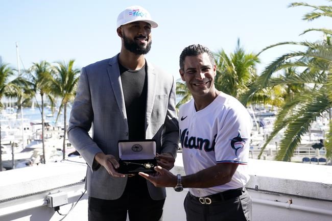 MIAMI (AP) — Miami Marlins ace Sandy Alcantara, the 2022 National League Cy Young winner, was awarded a key to the city of Miami from Mayor Francis Suarez on Tuesday.