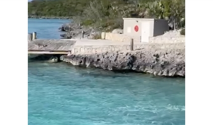 When the shark swam away from the pier, the medium-sized dog scrambled back onto the rocks and loped away, earning applause from the tourists. The boat then headed to a popular area where tourists jump into the water with the renowned Bahamian swimming pigs.