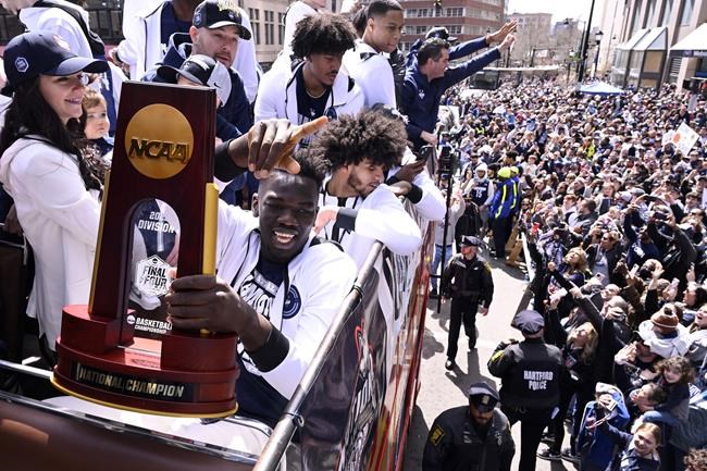 HARTFORD, Conn. (AP) — U.S. Sen. Richard Blumenthal was expected to be discharged from a hospital Monday following what he called successful surgery on a minor leg fracture he suffered during a victory parade for the national champion University of Connecticut men’s basketball team over the weekend.