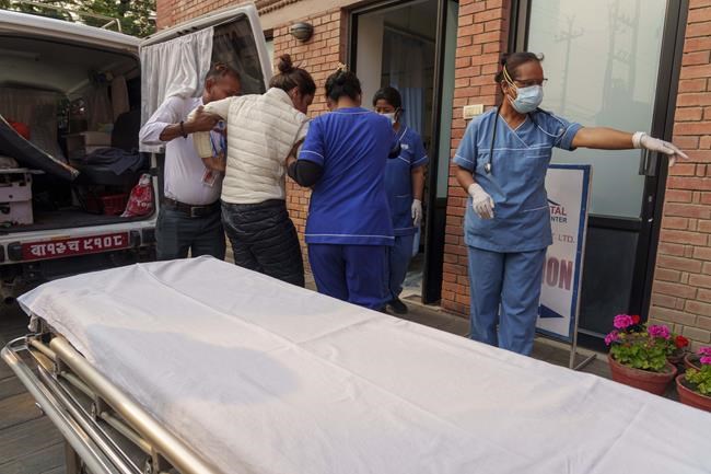 She was taken to a hospital in Kathmandu, where she walked from the ambulance to the hospital building with the help of a nurse.