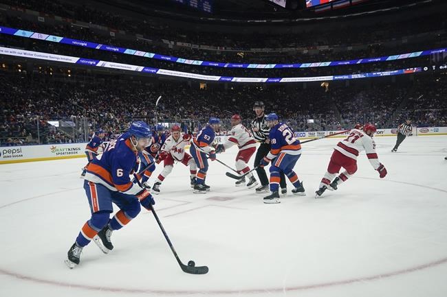 NEW YORK (AP) — The Islanders were locked in another tight game with the Carolina Hurricanes until a big goal late opened a record-setting scoring outburst and helped New York get a big home win after a pair of one-goal losses on the road.