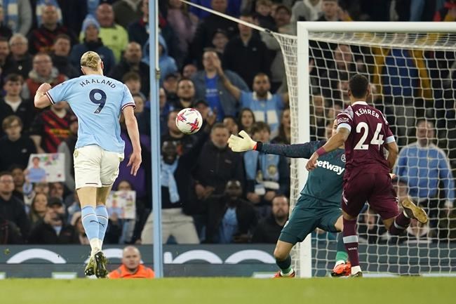 MANCHESTER, England (AP) — Erling Haaland set a new Premier League goals record by scoring his 35th of the season in Manchester City’s game against West Ham on Tuesday.