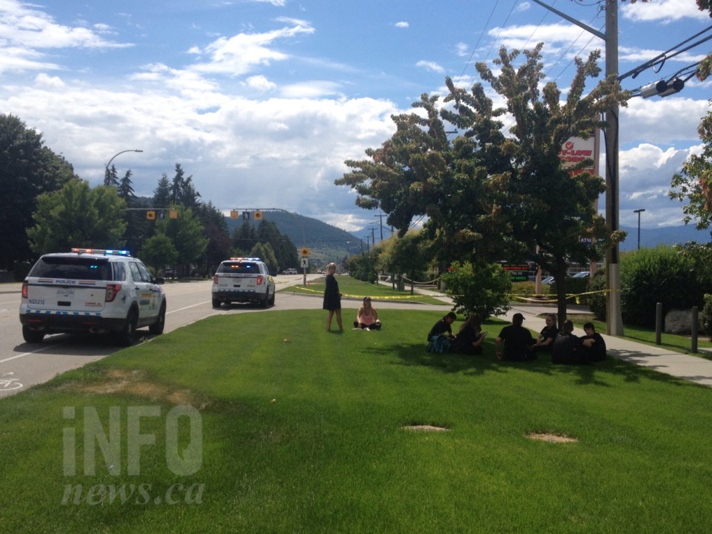 Four police cars, B.C. Ambulance and Vernon Fire Rescue were on scene at the Landing Plaza on Okanagan Landing Road from about 1:30 p.m. to roughly 4:30 p.m. today, July 12.