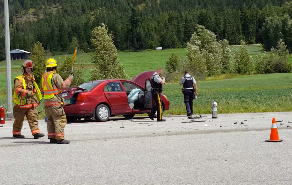 About 2:10 p.m., the driver of the vehicle with the toddler in it attempted to leave Harding Road and turn northward on Highway 97A. It was struck by an oncoming Ford Explorer, travelling in the southbound lane.