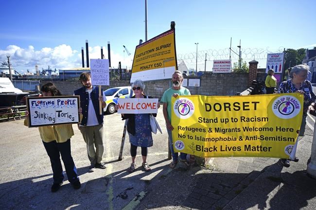 LONDON (AP) — A small group of asylum-seekers was moved Monday onto a barge moored in southern England as the U.K. government tries to cut the cost of sheltering people seeking protection in the country.