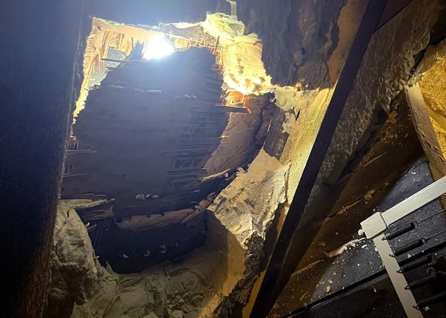“I had no idea what this was,” he said. He grabbed a flashlight and started looking for damage but couldn’t see any at first. His wife called police and then he spotted hole in the roof. He ran up to the attic to see if there was a hole.