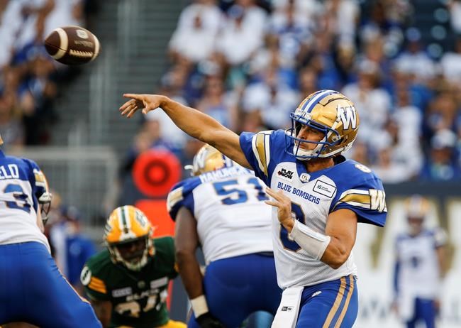 Collaros was injured in the first half of Winnipeg’s 38-29 road victory over the Edmonton Elks on Aug. 10.