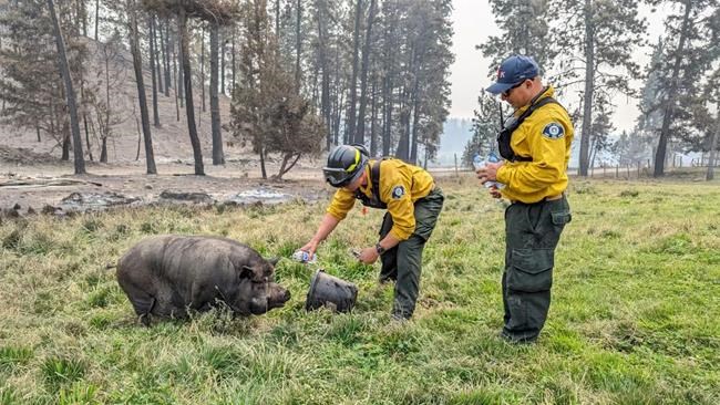 Lawrie said her father, Jeff Findlay, had tried to load Poomba and her sister pig, Miss Wilbur, for evacuation as the McDougall Creek wildfire advanced on the property last week. But they were too stubborn, and Findlay had to flee without them.