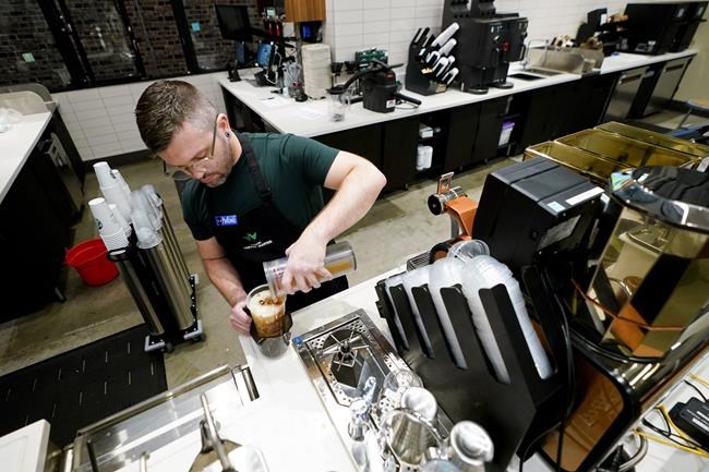 TEMPE, Ariz. (AP) — Bethany Patton steps up to the counter and places her pink mug into a shoebox-sized dishwasher. It spins. It whirs. Water splashes inside. After 90 seconds, the door opens and steam emerges. A barista grabs the mug, dries it and prepares Patton’s order — a 16-ounce Starbucks double espresso on ice.