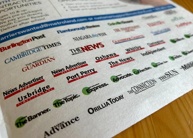 TORONTO – Large swaths of Ontario will lose their local newspapers as one of the country’s largest media conglomerates ends print editions for its community news titles.
