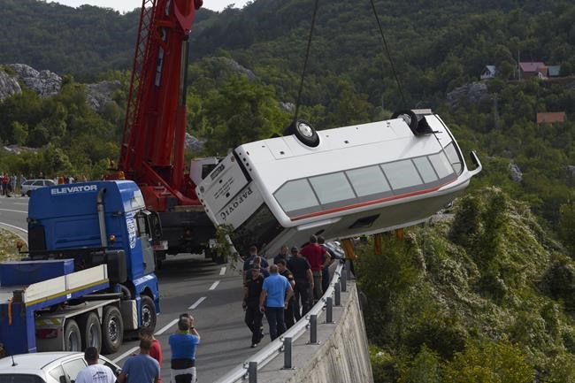 The bus was carrying some 30 passengers when it swerved on a steep road around noon, police said. Local media reported that the bus was traveling on a road connecting the town of Budva, on the Adriatic Sea coast, with Cetinje, which is located in a mountainous inland area.