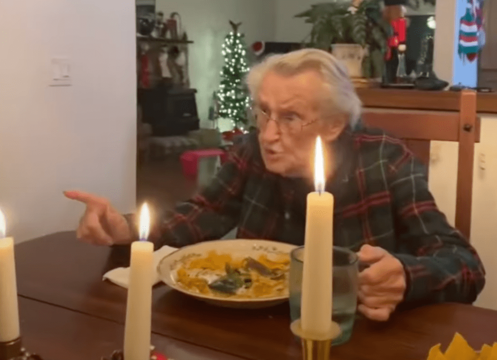 Cut to a 22-month-old in a highchair literally giving her great-grandmother some lip.
