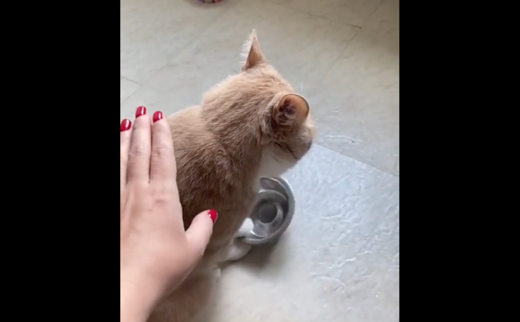 He doesn't want pets, he wants food and he's going to be annoying until he's fed.