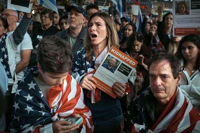 Schumer said he assured Israelis on a recent visit that the U.S. is committed to Israel. “We will not abandon you,” he told the crowd. “We will fight with you side by side until the threat of Hamas is totally eliminated and every hostage is brought home.”